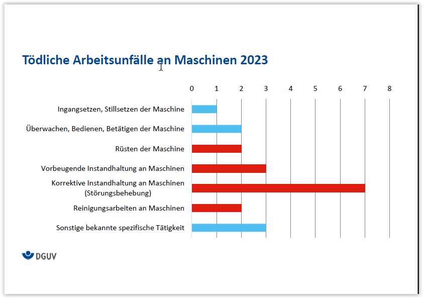 Eine Mitarbeiterin wollte an einer Konfektionsmaschine für Kunststoffsäcke eine Störung bei laufender Maschine beseitigen. Beim Entfernen von Randbeschnitt geriet sie mit der Hand in den Bereich einer ungesicherten Einzugsstelle eines Walzenpaares und wurde erfasst. Bei der Unfalluntersuchung stellte sich heraus, dass die Schutzeinrichtung, mit der diese Gefahrstelle normalerweise gesichert wird, seit längerer Zeit fehlte.